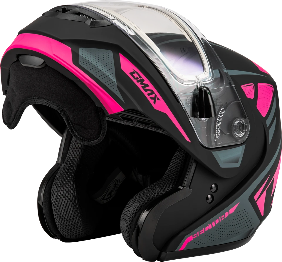 Gmax MD-04 Modular Snow Helmet Sector Matte Black Pink Electric Shield
