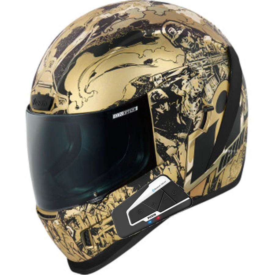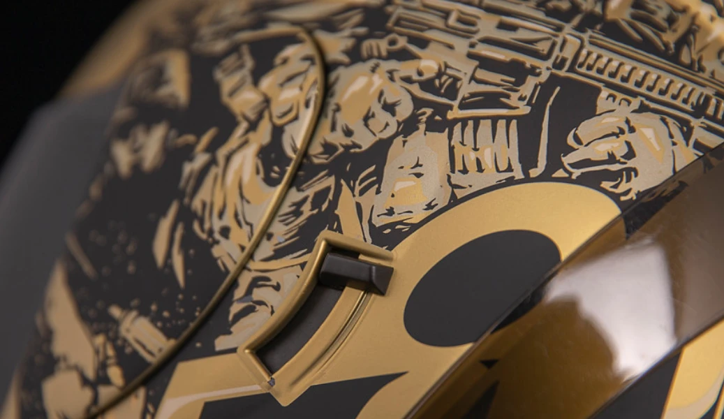 Going over the top, hacking through thick jungle foliage or jocked-up for a treacherous ride in hostile territory, the charge of soldiering never really changes. Inspired by current conflicts, the Airform™ Guardian helmet features a matte rubatone gold finish over a shattered landscape, a Fog-Free Clear and Dark Smoke shield, and Dark Smoke internal DropShield™.